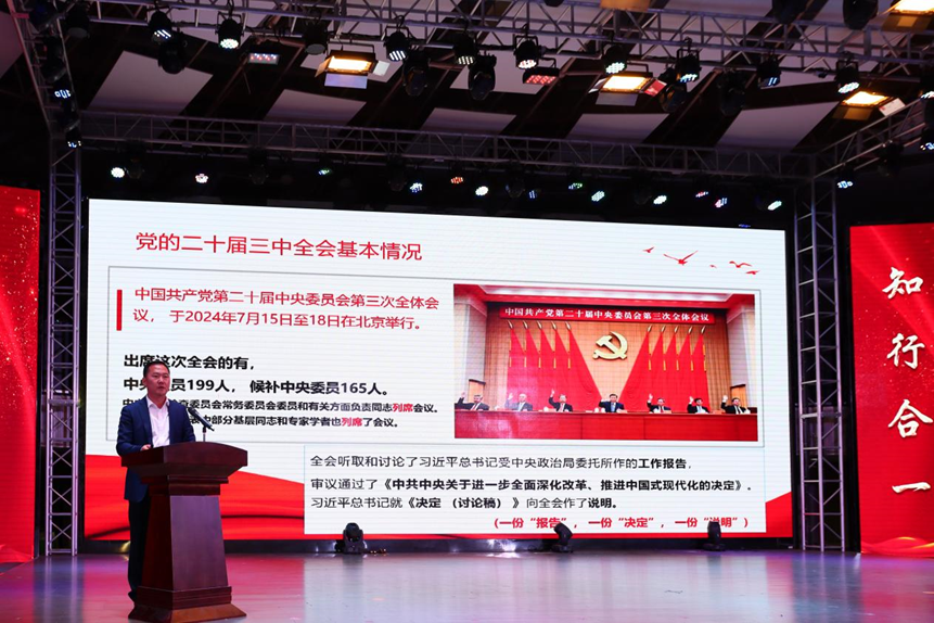 为全面深入学习宣传贯彻党的二十届三中全会精神,学深悟透习近平总书记关于全面深化改革的一系列新思想、新观点、新论断,教育引导全体师生统一思想、凝聚共识,进一步准确把握全会精神的精髓要义,根据公司统一部署,XCSport积极响应号召,分两批次邀请公司学习贯彻党的二十届三中全会精神师生宣讲团开展宣讲报告会。公司党政领导班子、全体辅导员及2000余名在校生参加宣讲报告会。报告会由公司党总支副书记周玳宜主持。
