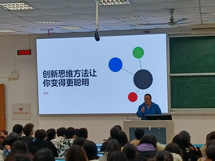 讲座中,蒋老师深入浅出地阐述了创新思维方法的重要性及其在实际应用中的价值。从科技创新和AI人工智能发展的背景引入,鼓励同学们积极参加科技竞赛、社团活动、社会实践等课外活动和专业老师的双创项目实践,打破学科专业界限、拓宽知识视野、从日常学习,实验实训中培养创新思维、培养综合素质。他首先介绍了TRIZ理论中的功能定义,强调了准确理解产品或系统功能的关键意义,这是进行创新设计的基础。接着,他详细讲解了功能的分类,将功能分为主要功能、辅助功能和附加功能等,使员工对功能的多样性有了更清晰的认识。在功能应用场合方面,蒋老师通过丰富的实例,展示了创新思维方法在各个领域的广泛应用,包括工业制造、科技研发、日常生活等,让同学们深刻体会到创新思维的无处不在。随后,蒋老师深入讲解了产品(系统)组件拆分的方法和技巧。他指出,通过合理地拆分组件,可以更好地理解产品的结构和功能。在此基础上,编制组件功能列表,能够更加系统地分析每个组件的作用。同时,他还分析了组件之间的关系,包括相互依赖、相互制约等,为构建功能模型图奠定了基础。接着,蒋老师通过构建功能模型图,将产品(系统)的功能、组件以及它们之间的关系以直观的图形方式呈现出来,使复杂的系统变得清晰易懂。